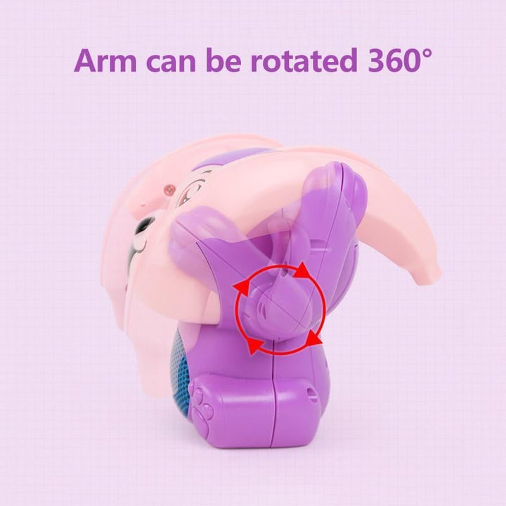 - Controlling the sound that attracted the child, clapping or making a sound caused the toy to play a lively song and run happily, as well as helping them practice lifting their head.