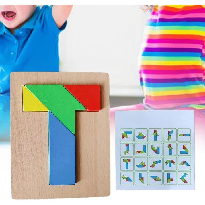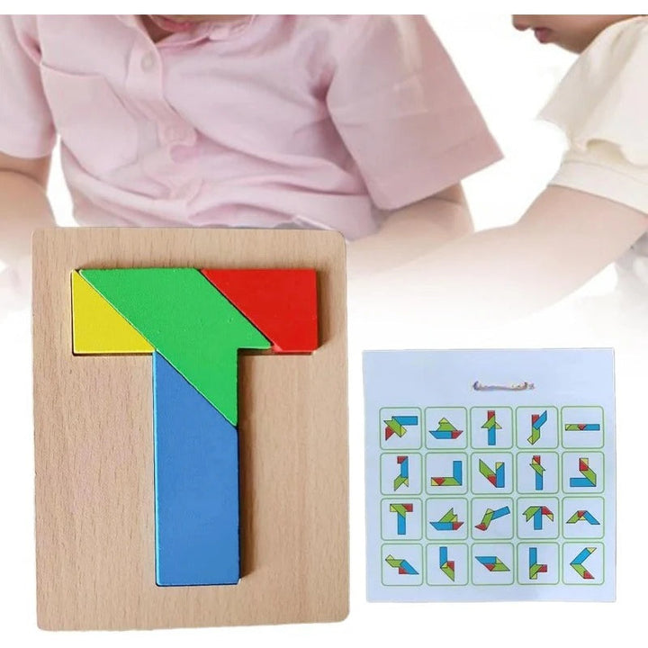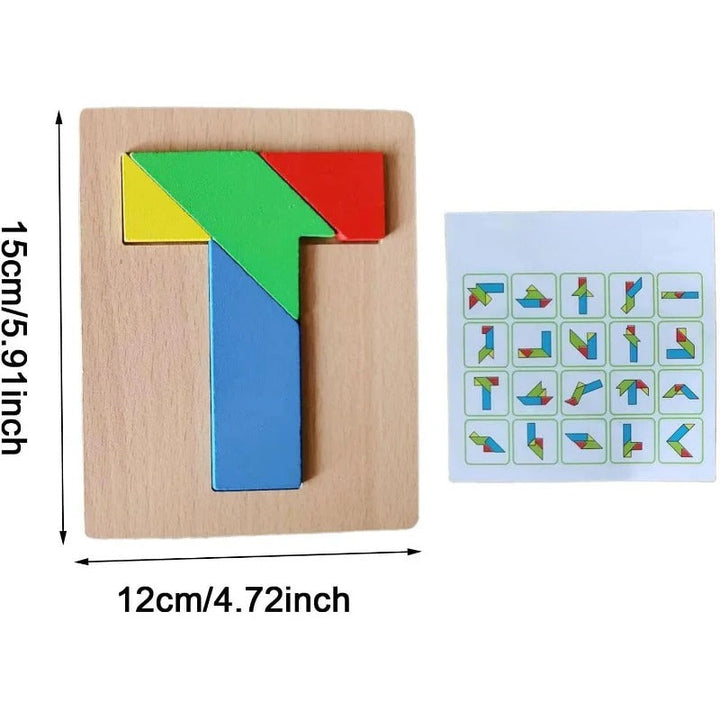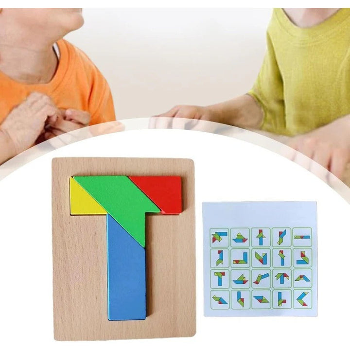 Wooden T-Shaped Tangram Puzzle Toy – Brain Teaser for Kids